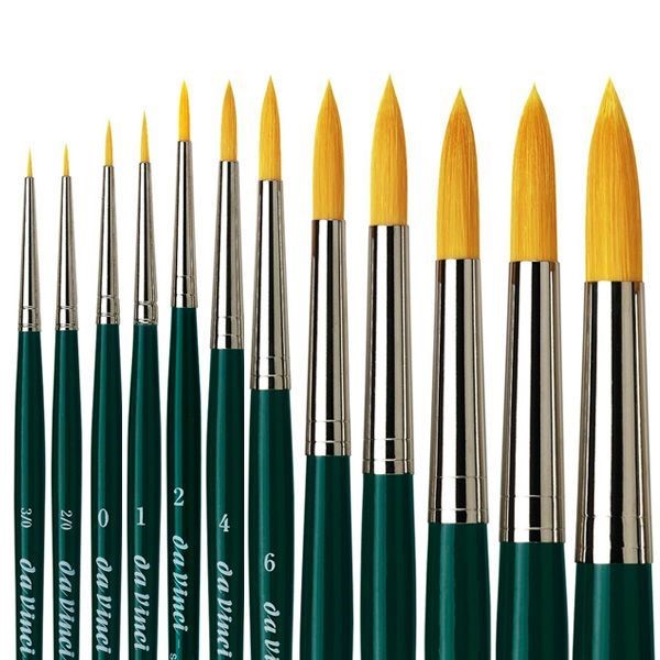 Empieza con pinceles para acuarela, de pelo sintético, un número 6 es perfecto para empezar. Si puedes ampliar a dos, yo elegiría el 2 y el 8.